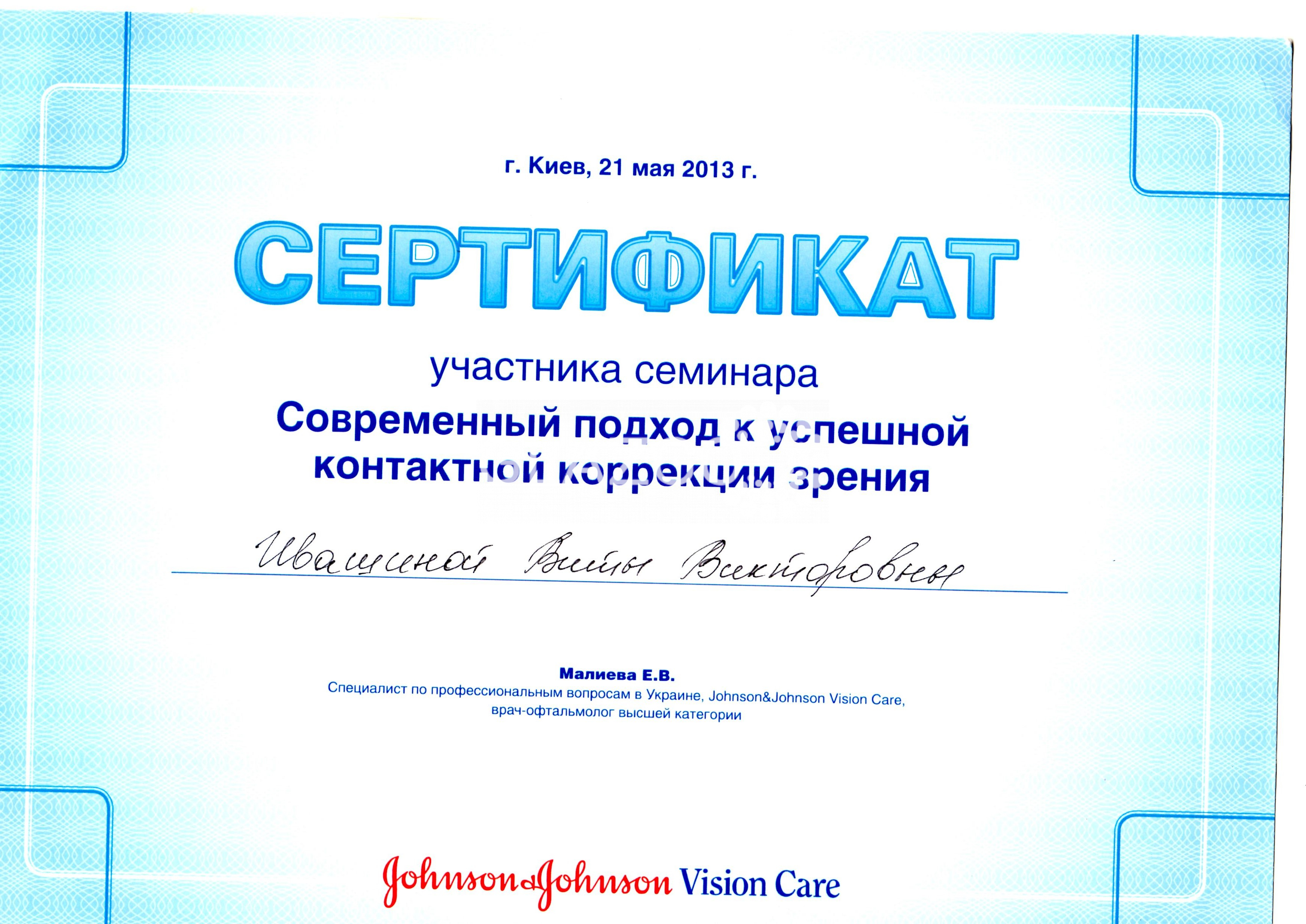 Январь 2018 г. – сертификация по ортокератологии.